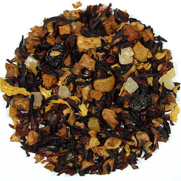 Ingrediënten: hibiscus, appel, rozijnen, mango, papaja, ananas, rozenschil, calendula-aroma.
