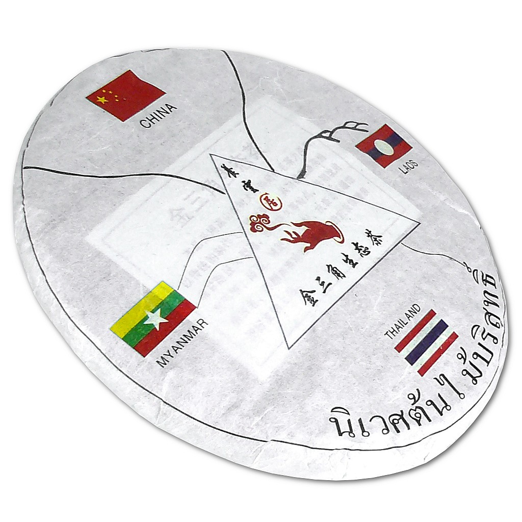Golden Triangle Raw Pu-erh Cake is een rauwe pu-erh thee, geperst in de traditionele vorm van een cake met een gewicht van 345 gram. Het unieke ligt in de grondstoffen die zijn gebruikt om het te produceren – oude theebomen uit de regio van de zogenaamde Gouden Driehoek.